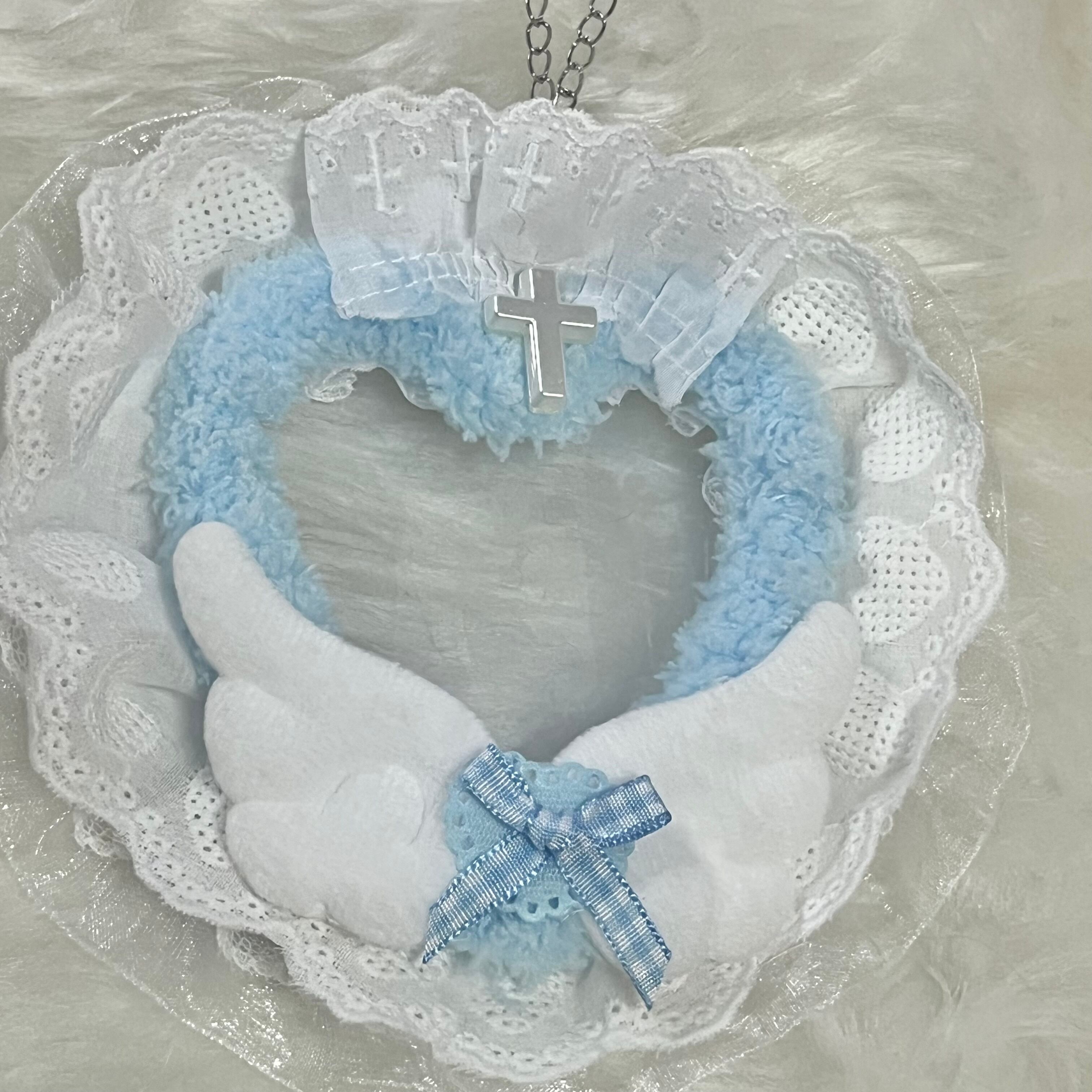 ハート柄と十字架柄の可愛いレースをあしらっております!